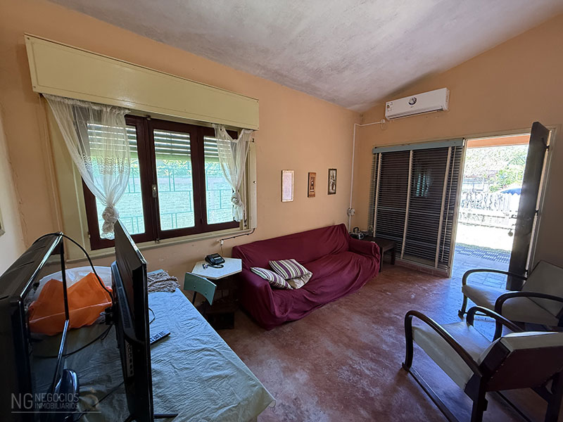 La casa principal se compone de living con aire acondicionado, cocina-comedor, dos dormitorios y baño.