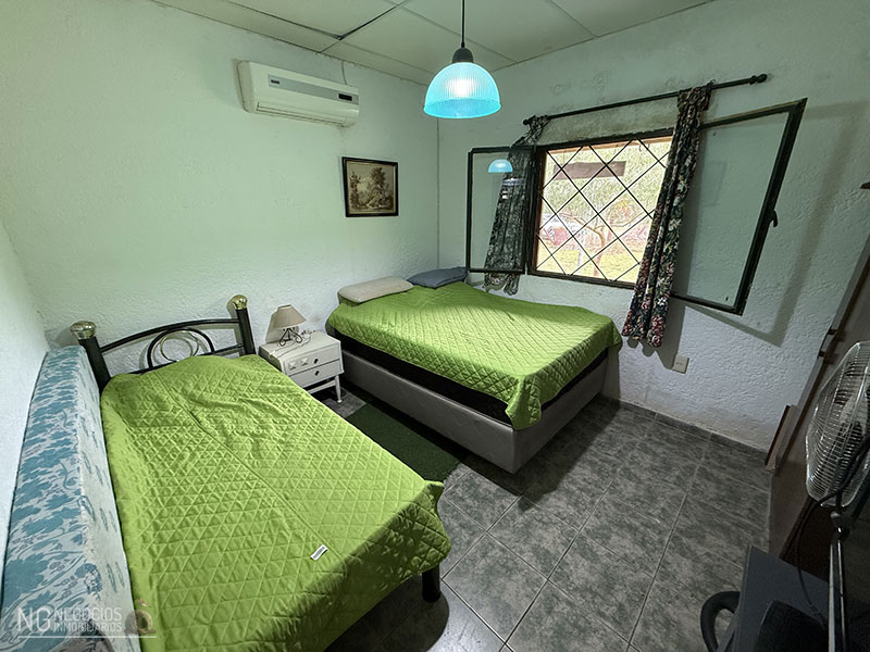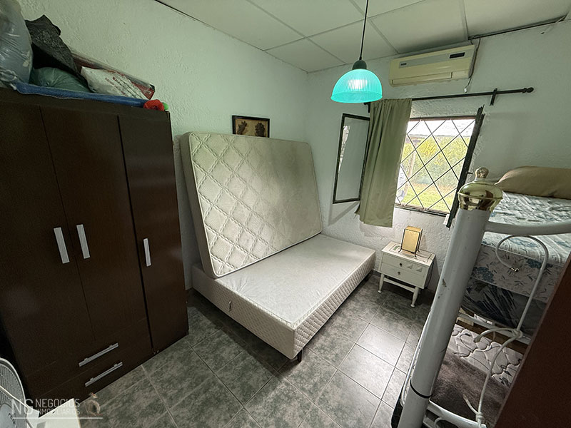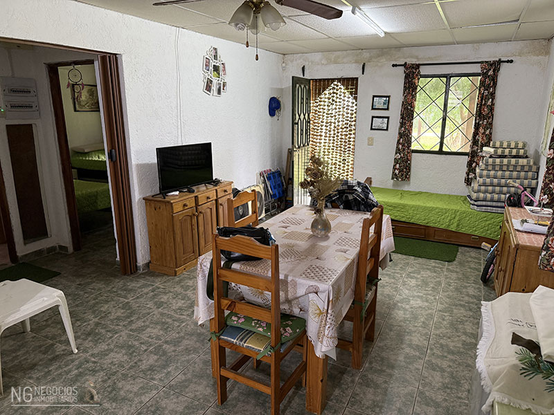 La casa, de unos 130 m², ofrece un diseño práctico con living-comedor y cocina integrados, 2 dormitorios y baño, todos con aire acondicionado.
